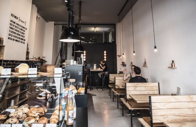 现在精品咖啡馆不单要拼咖啡,还要拼自家店面设计,好看真的是吸引路过客户进入的一大原因啊!不过,做了功课专程跑去这家的。这家之前用了和Noma一众一个品牌的豆子,这次去的时候,店里咖啡使用的豆子来自柏林的Bonanza和伦敦的Dark Art Coffee。 - Cold Brew:冷萃和氮气咖啡觉得对真爱了。用的是Dark Art Coffee Thelema,秘鲁的豆子,闻着就很清香,是两人都很喜爱的风味,微微的果酸中有着坚果风味,伴着花清香,很棒了!专门查了官网,可惜Thelema这款已经在网店里找不到了,否则妥妥的下单回家让朋友手冲。 - Espresso:可以在Bonanza和Dark Art Coffee中选一款,朋友当然选了两人没尝过的后者,酸度有些高,但不至于吃不消。