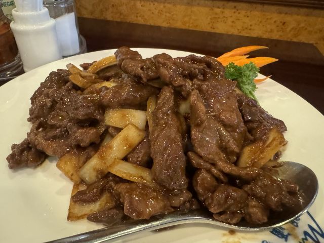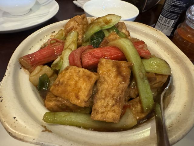 在柏林也算是有点小名气的中餐厅,问了导游什么水准,导游答复说,疫情前来过,疫情后不能保证还跟疫情前是同样的口味。餐厅中文大名叫做“大明酒家”,总的来说口味还是比较接近中国国内感受,水准略逊,但是对于漂在欧洲数日的游人来说,已经很亲切了。香菇菜心、海鲜豆腐煲、蚝油牛肉、鸡蓉玉米羹,这几样都甚是满意。