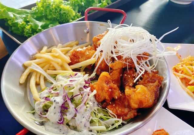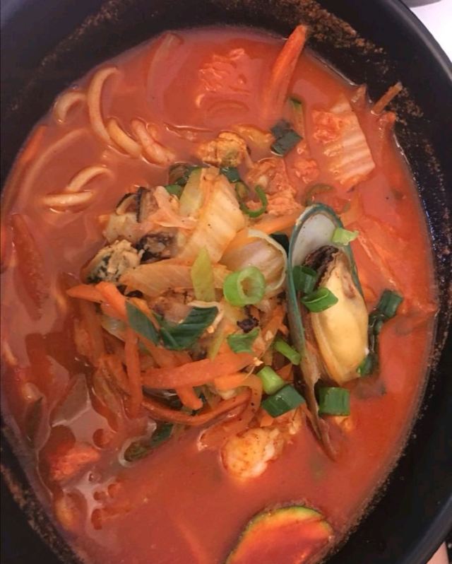 这是一家位于米特中心区的韩国餐厅,地方不大,如不事先预定需等位,服务员英语说得很棒,沟通无障碍。菜品分量足,推荐牛肉石锅拌饭,牛肉与鸡蛋加热后嗞嗞作响,浓香四溢,视觉效果五彩斑斓,配上一碗泡菜大酱汤,正宗韩国味。