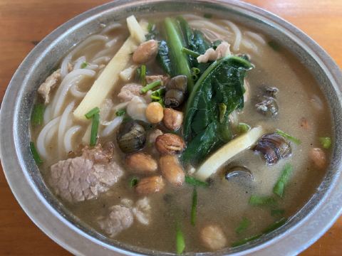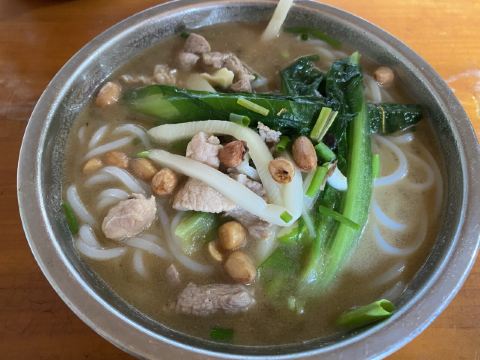 去广西旅游,这一站来到了黄姚古镇。早上客栈没有包早餐,所以自己出来找吃的了,大街上到处都有吃早餐的地方,凡是小吃店,在早餐都会卖早餐。早餐的品种基本上以粉为主,特色是豆豉粉,我点了{桂林米粉}和{螺狮粉},由于前一天已经吃过豆豉粉了,所以在这里选择了另外一种广西的特色米粉,谁知道严重踩雷,米粉一丁点风味都没有做出来,该有的配料也不足,后来我们只吃了两口就走了。