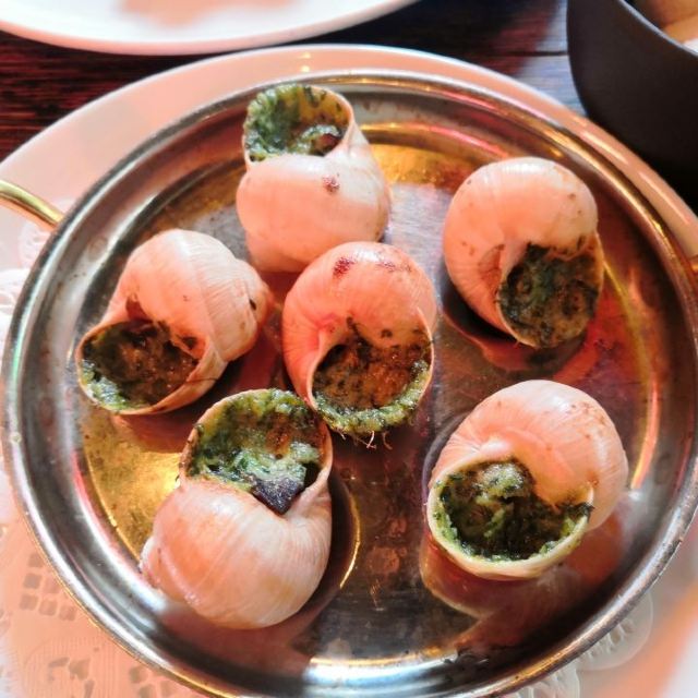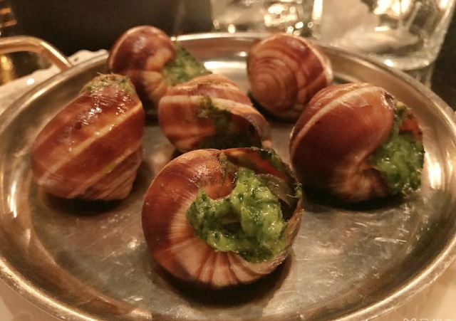 Love China Tours金蜗牛餐厅位于巴黎二区繁华的步行街上,距离Chatelet地铁站不远。餐厅屋顶的金色蜗牛非常醒目,众多食客在此驻足等候就餐。蜗牛分为6、12、36只/份,不同的做法配以不同的佐餐葡萄酒,回味无穷;主菜分为牛肉、猪肉、鸡肉、鱼肉等,Bourguignon of beef香味浓郁;伊比利亚猪肉“PLUMA”也是满口留香;STONE BASS配菠菜也强烈推荐。 蜗牛品种属于法国勃垦地蜗牛,属于个头比较大肉质鲜美的蜗牛!超级好吃,推荐原味,咖喱什么的口味因人而异!吃蜗牛吃到撑,真香! 牛髓骨油腻,不符合我的胃口,配上粗盐也很难下咽!