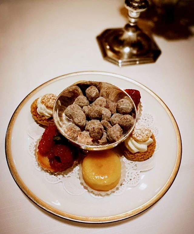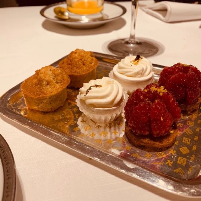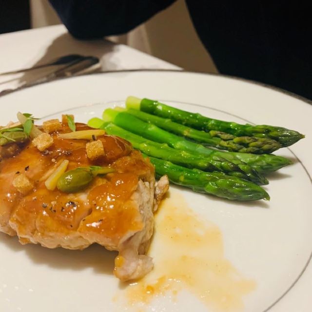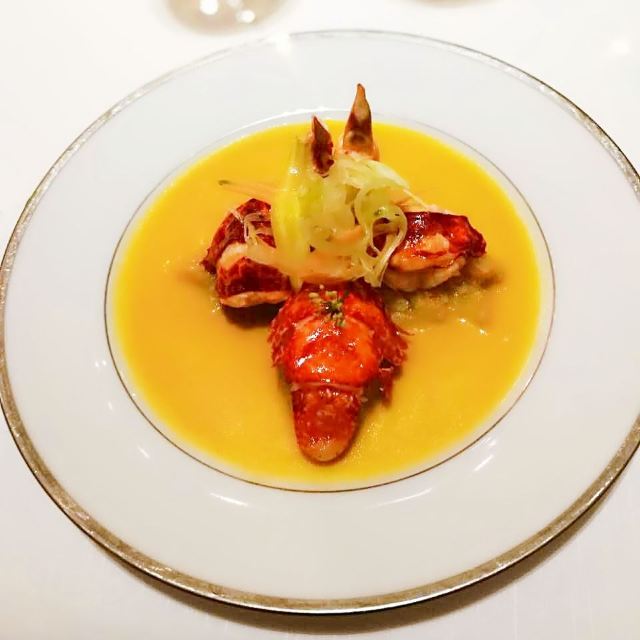 Côte de veau double braisée, langoustine with curry,Escalopines de bar à l’émincé d’artichaut, caviar Kristal ,烤羊排,红酒龙虾,惠灵顿黑松露,榛子达克瓦兹,煎小牛肉配芦笋,佐以洋葱焦糖与迷迭香等香料酱汁的龙虾与马铃薯,草莓甜汤,佐以黄酒与羊肚菇酱汁的蛙腿,鹅肝,法式蛋白霜酥,烤鸽子,龙虾与时蔬,千层酥配黑松露