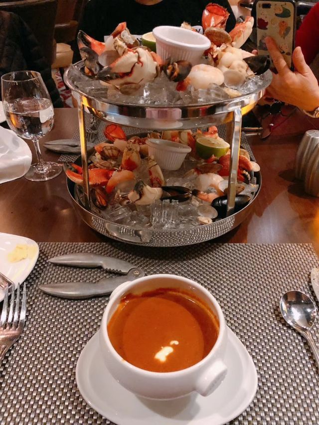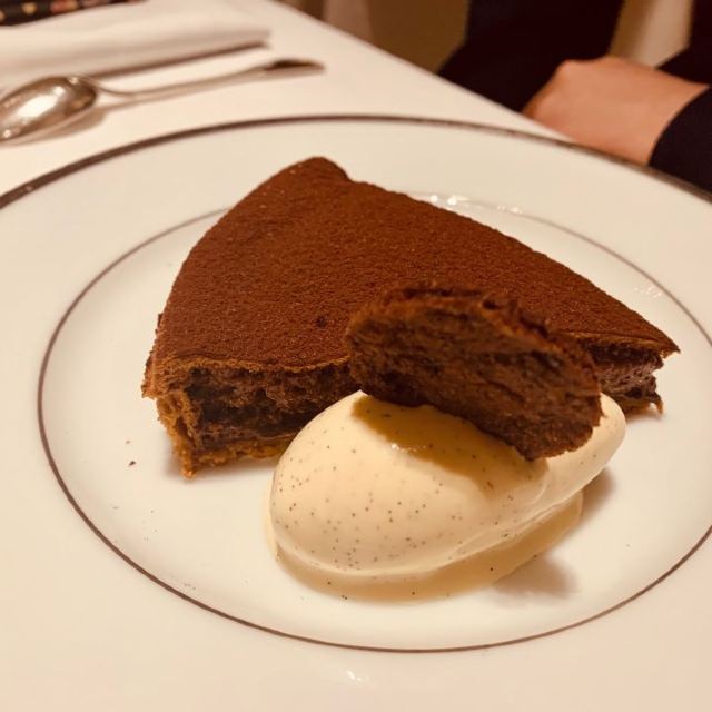 被姐L'Ambroisie,超爱的一家传统法餐厅。去这家用餐已经有些时日了,补一下评价。 餐厅位置在最有巴黎气质但并不太火爆的地点Place de Vosges,孚日广场。 我们到得比较早,餐厅还没有开门,便在附近逛了逛。餐厅旁就是雨果故居。我们像巴黎人喜欢的那样在孚日广场的公园小坐了一会。夕阳,草地,席地而坐畅谈的人们,在沙坑里嬉闹的小孩,我和朋友没怎么交谈,只在静静的感受巴黎的生活气氛。 准点来到这家老餐厅门口,店名很低调的刻在石牌上,一盏烛灯里,似乎看到了这家子承父业苦心经营的家族老店的薪火相传。 餐厅内有几个隔间,是由一座老公寓改造成的。装饰都是非常熟悉而且温馨的,好像在别人家做客一样。 餐厅每年只有四张菜单,春夏秋冬,每一个季节都会甄选当季最优质的食材做几道精益求精的美食。服务生介绍说,现在是夏季菜单,以龙虾为主,今年秋天将换成以意大利白松露为主的菜单,而冬天,就是法国黑松露了。春天不知道是他没说还是我没记住,留下了一片空白。 废话不多说了,直接说上菜吧。 前菜之前,开胃酒我们还是保守的点了香槟。佐菜是一道三文鱼,味道很不错。 前菜我点的蜗牛,朋友继续点了鱼子酱。蜗牛配意面,听起来和吃起来都有点怪怪的,我没有给高分。但鱼子酱糖心蛋得到了朋友的高度赞扬。鱼子酱还配有一小杯伏特加。 主菜我们未能免俗的点了夏季菜单主打:龙虾。相比L'Epicure,我觉得L'Ambroisie的这道龙虾出彩更多!首先摆盘更生动,整只龙虾保留了更好的口感,盘底的酱汁也相当出色! 配酒方面,我和朋友都不太想畅饮,只想搭配下菜品。经服务生的推荐,我们按杯点的白葡萄酒。 甜品我们又征求了服务生的意见,他强烈推荐我们点巧克力蛋糕。被米其林称为全世界最好吃的巧克力蛋糕,唯一一道三十年未从此餐厅的菜单上撤下过的菜。鉴于他的美言,我们自然忍不住要尝一下,结论是:名!不!虚!传!热烘烘的巧克力烤得恰到好处,外焦内化,浓度也刚刚好,不苦不腻。搭配的香草冰淇淋也非常纯正清爽。一冷一热,冰火两重天相遇在唇齿间,刺激你的味蕾。真想用高潮来形容。 最后一张图是餐后甜品小食,和中午一样,我们的胃已经没有空间容纳他们了,我象征性的吃了一点。 整体而言,这里的就餐的环境比较简单,相比Alain Ducasse的富丽堂皇,简直就是农家小院的感觉。光线略暗,所以拍出来的照片效果欠佳,望见谅!
