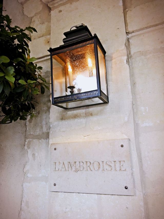 L'AMBROISIEL'Ambroisie,超爱的一家传统法餐厅。去这家用餐已经有些时日了,补一下评价。 餐厅位置在最有巴黎气质但并不太火爆的地点Place de Vosges,孚日广场。 我们到得比较早,餐厅还没有开门,便在附近逛了逛。餐厅旁就是雨果故居。我们像巴黎人喜欢的那样在孚日广场的公园小坐了一会。夕阳,草地,席地而坐畅谈的人们,在沙坑里嬉闹的小孩,我和朋友没怎么交谈,只在静静的感受巴黎的生活气氛。 准点来到这家老餐厅门口,店名很低调的刻在石牌上,一盏烛灯里,似乎看到了这家子承父业苦心经营的家族老店的薪火相传。 餐厅内有几个隔间,是由一座老公寓改造成的。装饰都是非常熟悉而且温馨的,好像在别人家做客一样。 餐厅每年只有四张菜单,春夏秋冬,每一个季节都会甄选当季最优质的食材做几道精益求精的美食。服务生介绍说,现在是夏季菜单,以龙虾为主,今年秋天将换成以意大利白松露为主的菜单,而冬天,就是法国黑松露了。春天不知道是他没说还是我没记住,留下了一片空白。 废话不多说了,直接说上菜吧。 前菜之前,开胃酒我们还是保守的点了香槟。佐菜是一道三文鱼,味道很不错。 前菜我点的蜗牛,朋友继续点了鱼子酱。蜗牛配意面,听起来和吃起来都有点怪怪的,我没有给高分。但鱼子酱糖心蛋得到了朋友的高度赞扬。鱼子酱还配有一小杯伏特加。 主菜我们未能免俗的点了夏季菜单主打:龙虾。相比L'Epicure,我觉得L'Ambroisie的这道龙虾出彩更多!首先摆盘更生动,整只龙虾保留了更好的口感,盘底的酱汁也相当出色! 配酒方面,我和朋友都不太想畅饮,只想搭配下菜品。经服务生的推荐,我们按杯点的白葡萄酒。 甜品我们又征求了服务生的意见,他强烈推荐我们点巧克力蛋糕。被米其林称为全世界最好吃的巧克力蛋糕,唯一一道三十年未从此餐厅的菜单上撤下过的菜。鉴于他的美言,我们自然忍不住要尝一下,结论是:名!不!虚!传!热烘烘的巧克力烤得恰到好处,外焦内化,浓度也刚刚好,不苦不腻。搭配的香草冰淇淋也非常纯正清爽。一冷一热,冰火两重天相遇在唇齿间,刺激你的味蕾。真想用高潮来形容。 最后一张图是餐后甜品小食,和中午一样,我们的胃已经没有空间容纳他们了,我象征性的吃了一点。 整体而言,这里的就餐的环境比较简单,相比Alain Ducasse的富丽堂皇,简直就是农家小院的感觉。光线略暗,所以拍出来的照片效果欠佳,望见谅!