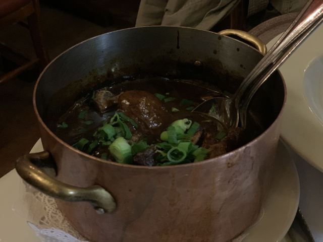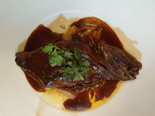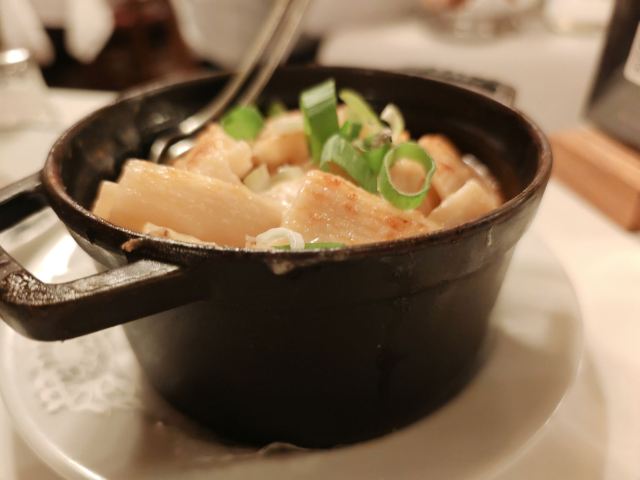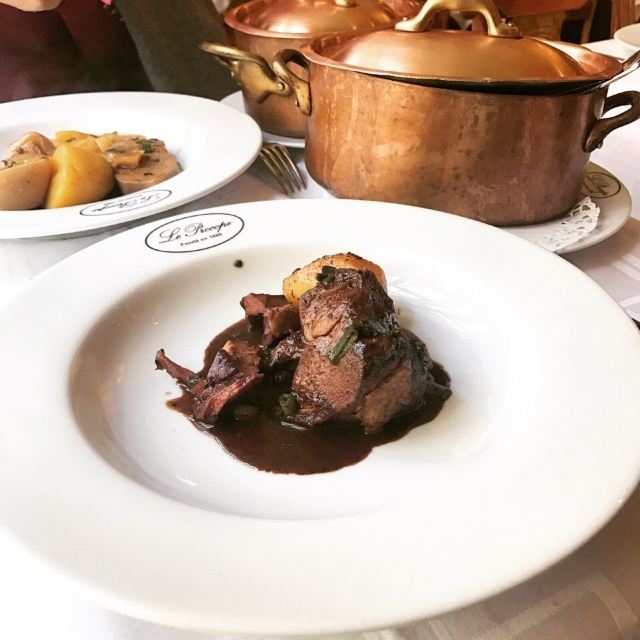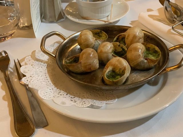 梦随意动这间有四百几年历史的老牌咖啡馆位于巴黎6区,餐厅的装修、餐台的布置都很豪华、舒适,服务非常到位,从客人踏进餐馆开始,你就能享受到优质的服务,而餐馆的大厨食谱是米其林三星主厨,我们一坐下,侍应见是中国人,马上拿了本中文菜谱过来,点好餐不久,前菜很快上台,焗大蜗牛,味美肉质弹牙,夹杂了浓浓的香草味,南瓜及栗子浓汤,加了松露起司酱,两者合二为一配上酱汁甚为浓香、绵滑清甜,前菜过后主菜上台,我们点了两个悠久的主菜:红烧燉鸡、牛腮肉通心粉配巴马干酪,另外:酥烤鳕鱼、膈柱牛肌肉,红烧燉鸡所配酱汁味浓郁,鸡肉口感还行,膈柱牛肌肉,这个味道口感不错,而:牛腮肉和烤鳕鱼,口感绵软已没啥嚼劲,这对于常吃粤菜的我们有点不习惯,但味道确实好,来这里除享用法餐美食之余还能让你有宾至如归的感觉。