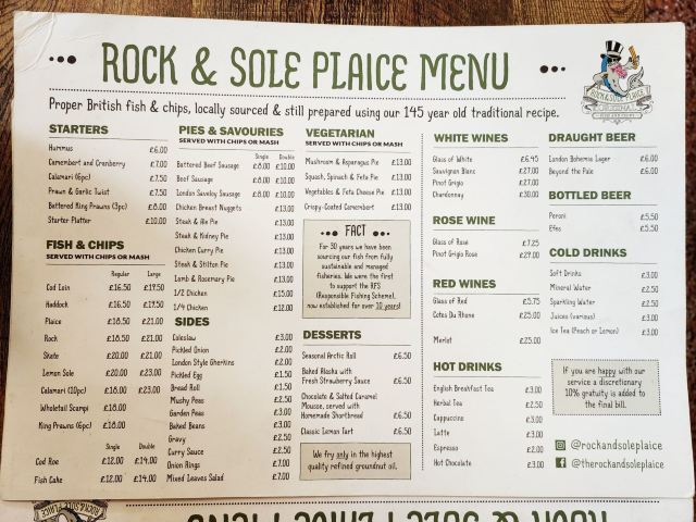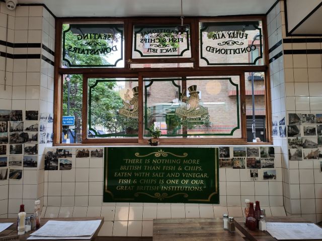 闻名世界的英国“国粹美食”就是炸鱼薯条啦!伦敦遍地都是经营“国粹料理”的小店,想要吃到正宗又地道的好餐厅,那就一定不能错过Rock & Sole Plaice!这是一家从1871年营业至今的伦敦最古老的炸鱼薯条店。他们家的鱼炸的焦香里嫩,不算太腻,配上各种调味料一起吃还是不错的! 值得一提的是他们家的薯条,不是像现在流行的那种又短又细的样子,而是沿袭着英式传统,把土豆切成了长长的方条状,这跟英国其他店卖的都不太一样。这家店的人气之旺从用餐时间门口排队排到绕成一小圈的模样就能看出来。就算不是用餐高峰,店里依然座满了人,经常会出现要和别人拼桌的现象。店家还很贴心的在结账时送上精美的明信片~