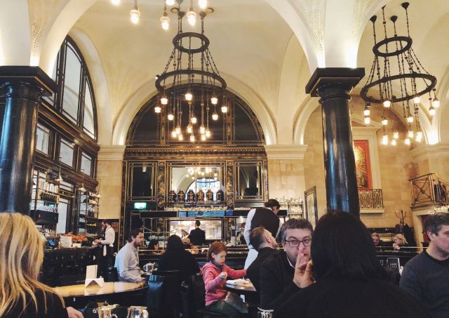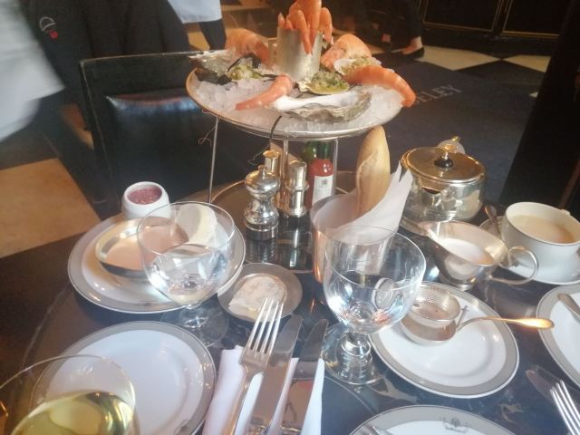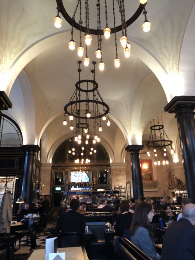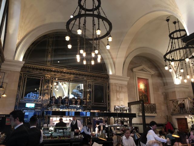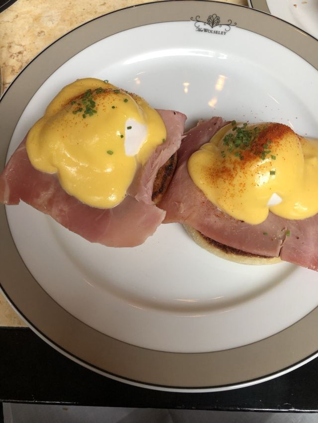The WolseleyThe wolseley餐厅就在市中心,号称有最好吃的早餐,提前一个月在官网上预订了九点前往,提前十分钟到达看过预订单领位就座,这以前是一家汽车展厅后改变成餐厅,服务绝对一流,早茶、咖啡、面包、几种菜品味道还不错!