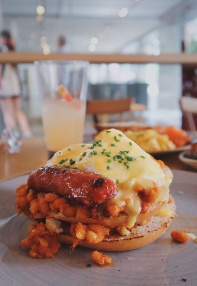 轻轻的一个蚊The Stack|没错!冲着这道来的 集齐了我的各种爱 番茄焗豆份量给的实在是慷慨!铺满了两层!再来就是一直很爱的贝果作主食。个人觉得特别之处在于这款里面的贝果比一般的要更松软 烤了之后很香 搭配西班牙香肠、火腿和两颗水波蛋!这份量真的无敌了 而且火腿丝吃起来竟然有肉松的感觉欸~ 觉得肉类吃起来有负担的 他家最近新推出了素食版the stack 感觉也不错。 Strawberry French toast|这道是新出的!貌似好久没吃法式吐司了!搭配都是很经典的了 草莓酱、香草冰淇淋 倒也没什么太大新意。但吐司的口感把握的非常好!肉桂风味的吐司表面略微酥脆 里面则较为松软。整体也很喜欢啦~ Scrambled eggs&Oak-smoked salmon|中规中矩的搭配却依然每一款食材都满分~蓬松的炒蛋和酸面包就是经典搭配啦!橡木熏制的三文鱼别有一番风味~其实三款食材都很有来头 一点不马虎,比如酸面包就来自Borough market的Little Bread Pedlar Sweet potato wedges|想吃甜薯就选了个配菜。不是条状而是切成了块状。边边烤的脆脆的~软糯又香甜