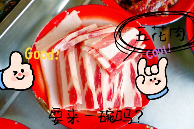 小猪儿肉,牛肉,小肠,五花肉,烤饭团,包将豆腐,灰豆腐,茄子,酸菜汤,牛筋