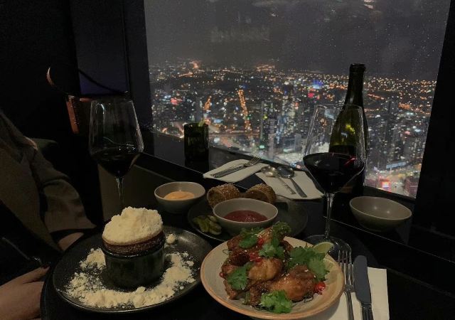 这家豪华酒吧坐落在墨尔本市中心一个55楼的商务楼里,配有景观台,整个墨尔本市中心都尽收眼底。尤其是傍晚黄昏,墨尔本的天际线美的令人窒息。餐厅酒类品种齐全,配有专业的调酒师。看着这么专业的调酒师调酒也是一种享受。食物美味,配上现场柔和的背景音乐和如此美景,简直是多重享受,强烈推荐。