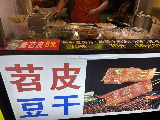 萝卜饺子,顶顶糕,桂花凉虾,小土豆,郑信记红糖凉虾,臭豆腐,烤猪蹄,烤生蚝,烤面筋,手工冰粉,凉虾