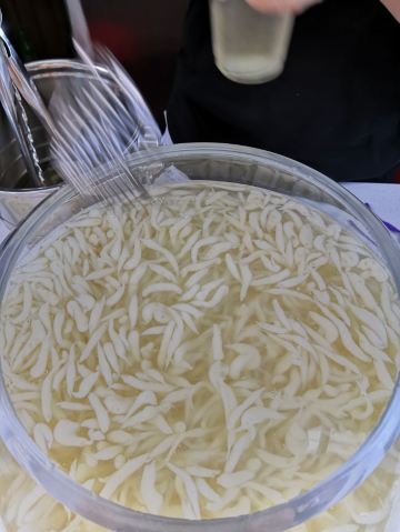 要问炎炎夏日,在宜昌吃点什么最爽快,莫非凉虾了,凉虾看似虾仁的形状,其实是大米熬浆做成,配入红糖水,香甜软嫩,入口冰凉。郑信记是宜昌做凉虾的一块金招牌,满满一杯凉虾爽滑给力,3元左右的价格实属公道,更有桂花冰糖味、酸梅汤味、蜂蜜味等多味可选。