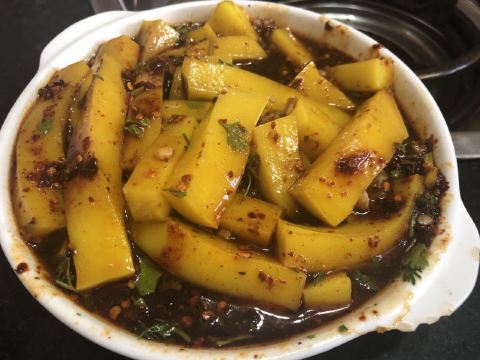 六合鱼庄,百年老店。离成雅高速出口很近,门面不显眼,门口不好停车,两层店面,食客还是不少。 点了不少小菜,黄凉粉,锅贴和粑粑菜。粑粑菜,咸淡可口,都是很软烂的蔬菜,我喜欢。 重头戏是六合鱼,鱼是花鲢,每条鱼6-7斤左右,鱼片片的薄薄的,一抿即化。微辣锅底,还有酸菜提味,但酸菜有点咸,整个锅底没有蔬菜和魔芋,感觉欠了点什么。