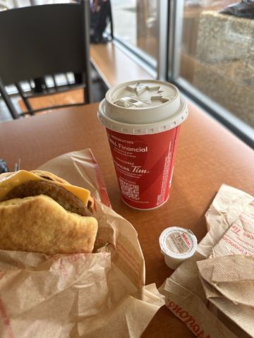 从我家下楼穿过湖边一条步行道就可以到达。街坊店,实惠快捷。强烈推荐强烈推荐办一张他家的会员卡,这样是购买七次就可以赠送一杯饮料,或一个小蛋糕。每天他每天都会发现优惠券给你。比较划算的。 点咖啡的时候服务员经常会问你How would you like to take your coffee?你可以回答就是regular一份糖,一份奶。也可以说double double:两份糖两份奶。