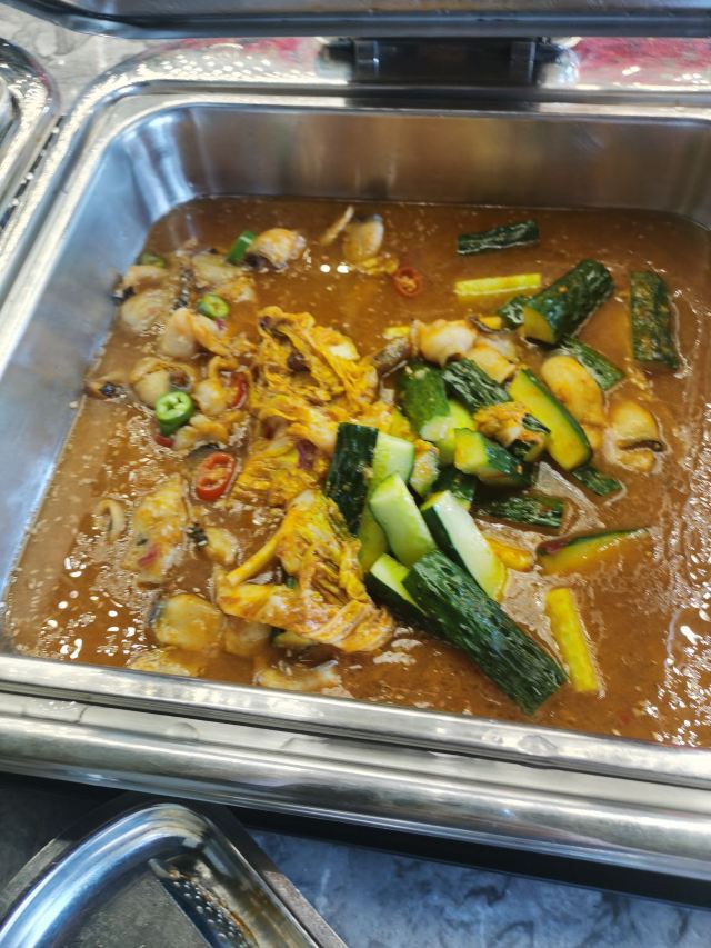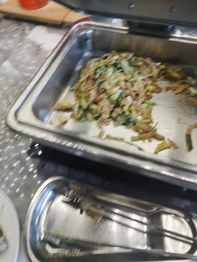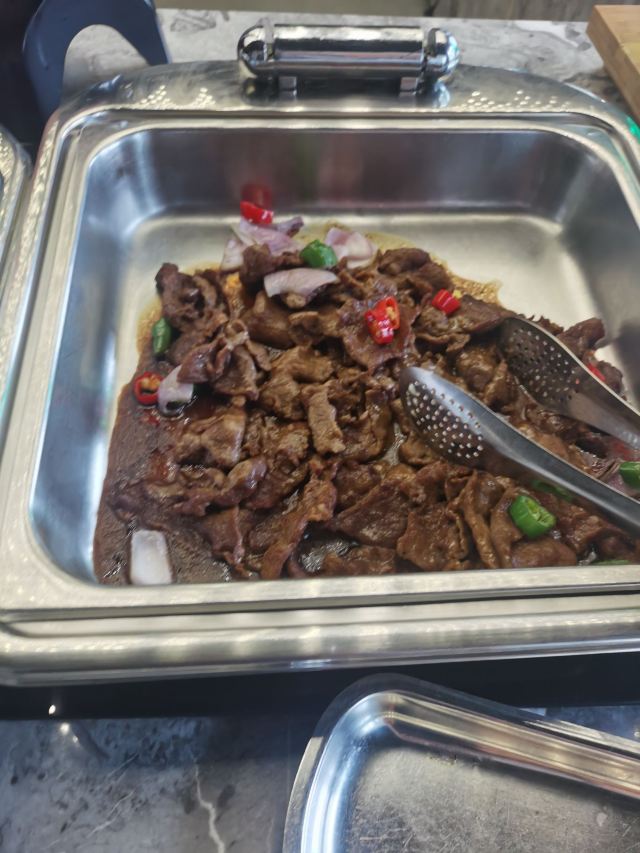 入住这家酒店,就在这里吃饭。开始嫌人少不给包间我们坐大厅。后来点了很多菜给安排了包间。其中一个打卤面,里面红菇好多泥沙不能吃。感觉这家服务态度不好。