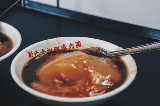 台湾很多地方都能吃到肉圆,而一般的前缀名都是彰化,所以,路过彰化一定要品尝一下。 老担阿璋肉圆,电影《那些年我们追过的女孩》的取景地之一,地方比较大,街对面2个堂食区。 肉圆的内馅、外皮、酱汁都很合口味,大赞。龙髓汤乍一看像炖蛋,骨髓全在蛋里。
