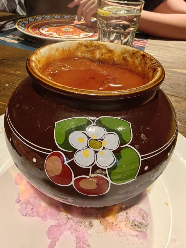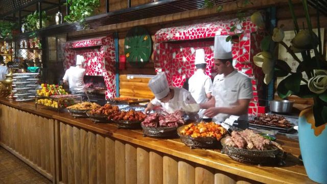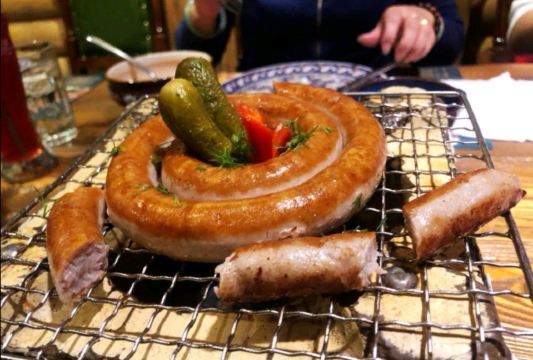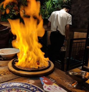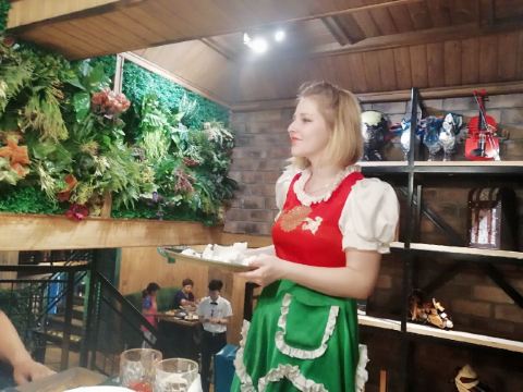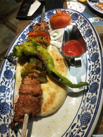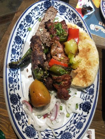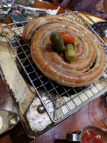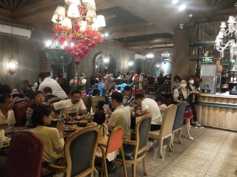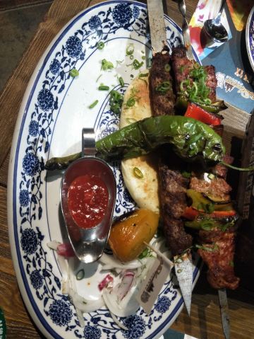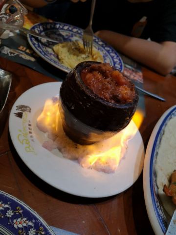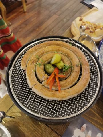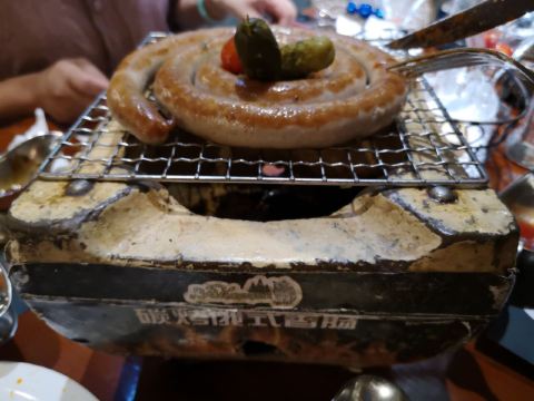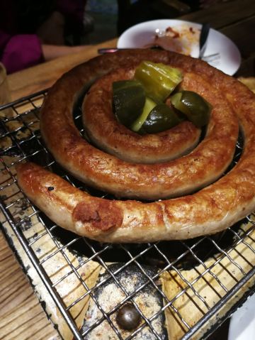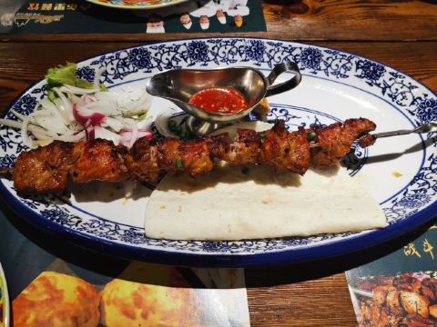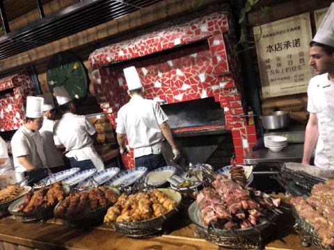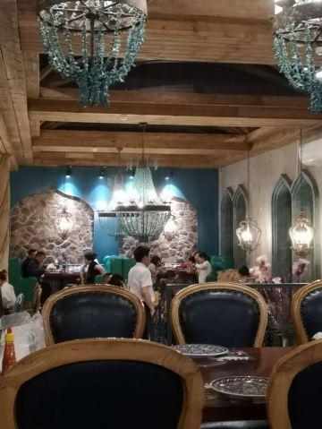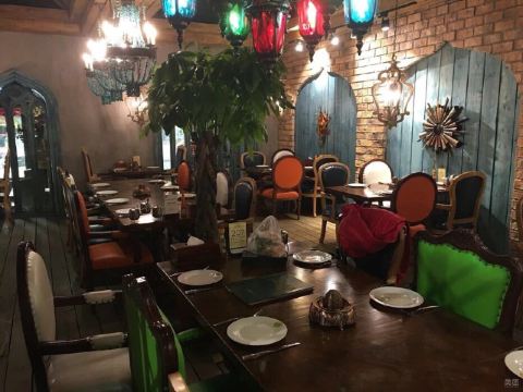 环境非常好,服务员有个女孩惊艳到我了太漂亮了,小伙服务员也很帅,饭菜很好,高级享受,两个人298,一扎浓浓的蓝莓汁太值了,其他特色超好,肉串好大好吃,盘肠也早点