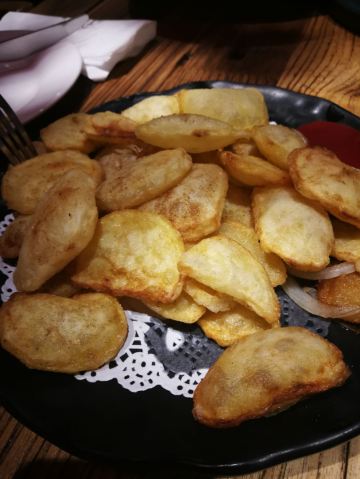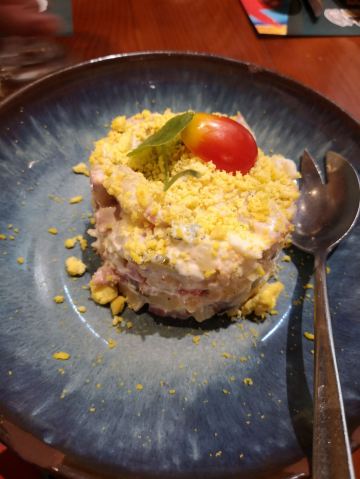 Rachel心灵有耳环境 餐厅整体装饰简洁大方,以俄罗斯民族和我大天人民都喜欢的红色搭配原木系为主,热烈而纯朴,配以圆柱形木头柱子搭配铁艺元素,很有俄罗斯村庄的味道~ 推荐菜 餐厅主打亚美尼亚烧烤和传统俄式菜肴~ 俄式碳烤香肠 很多人推荐,这次我就没点,原因主要在于外形和份量,外形盘的一圈圈的,细看会浮想联翩,此外份量很大,为了能多品尝其他特色,果断放弃~ 主食选择金枪鱼和战斧牛排 卢布里招牌土豆片, 吃时欲罢不能,吃完很罪恶的一款小食,很适合下午茶时间,与朋友格瓦斯搭配煎土豆聊起来 卢布里奶酪包,一般以店名命名的餐食通常都很,这款据说是墙裂推荐的一个奶酪餐,甜甜糯糯~以这个为衍生品的其他卖的好的奶酪包还有西米丹麦奶酪包,个人更倾向原汁原味 皇后沙拉,你见过长的像蛋糕一样的沙拉吗?没错就是皇后沙拉了,有些惊艳,也很别致,不用鱼肉糜,用鱼肉块,无处不在的大气~ 饮品:格瓦斯不二选择 实用tips: 餐食份量真心都很大,要有心理准备,如果想多品尝几种,最实际的办法就是多叫几个人去 人均消费: 120元+ 个人觉得搭配那个份量真的很实在了~~