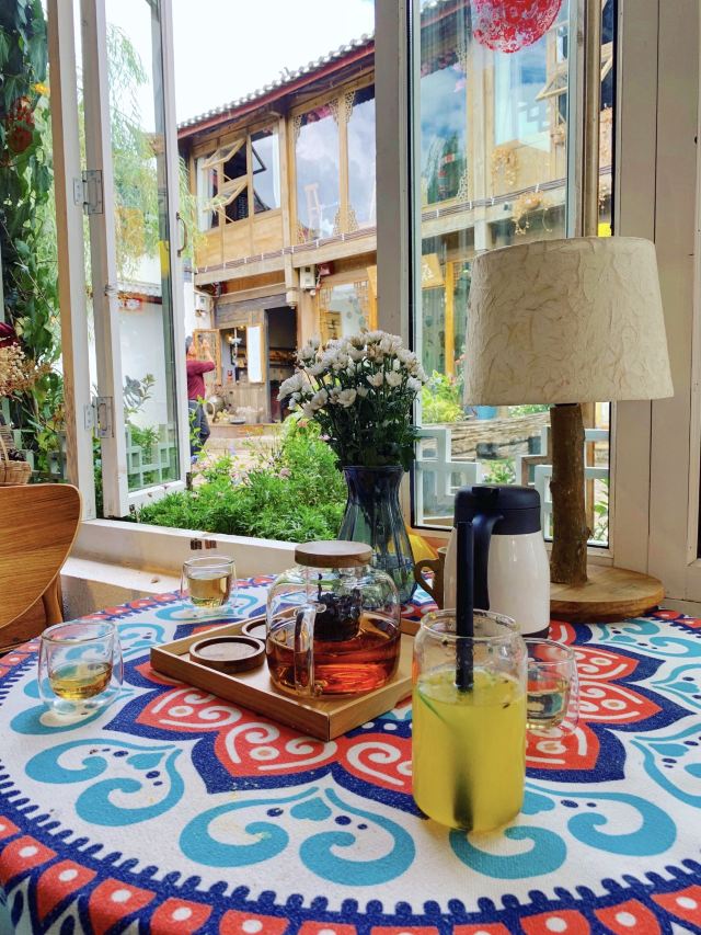 环境很不错,在小溪流旁边的一个,文艺小清新风格店铺!下午不间断有驻唱歌手演唱,选择一个靠窗的位置,太阳晒到身上,阳光满满的!东西和大多数地方差不多,比起丽江古城里的古镇味道,我觉得这里更适合拍照,里面摆件都是很怀旧的样子,老式的录音机、电视机、还有缝纫机!手机随拍都很OK!