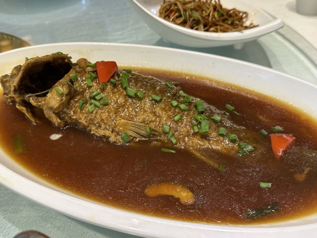 陌染MM去云南旅游,这一站来到了丽江市,这一家餐厅离丽江古城很近,是一家非常不错的园林式餐厅。用餐的环境很好,都是一间一间独立的包厢,也可以几个包厢连通打开挡板。菜品的味道不错,鱼、肉什么的都非常新鲜,而且吃起来也有锅气的感觉。 {红烧鱼},鱼刺不多,鱼新鲜好吃。{凉拌豆皮},调味不错,味道刚刚好,而且也不会觉得放很久的口感。{香辣葱油鸡},挺特别的,不会很辣,微辣,因为是新鲜鸡,所以鸡吃起来有鸡味,不会木木的肉质,温热的,不让大家吃冷冰冰的肉肉。{凉拌酸菜牛肉丝}也好吃,虽然不是热菜,但是分量一点也不马虎,牛肉切成丝,但是堆成一个小山峰了,下面铺垫了酸菜,我喜欢。
