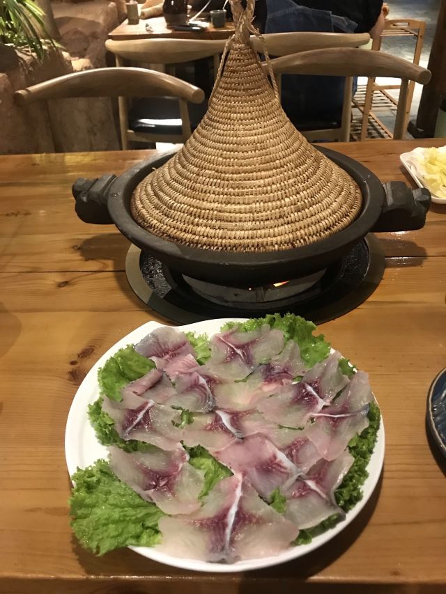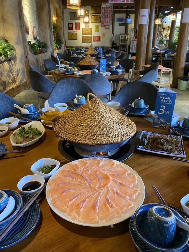 Shi Guo Yu店铺装修 布置 很有当地云南特色 锅底 是炭火的 石锅 据说会释放微量元素 因为之前有吃过 金鳟鱼套餐 觉得的确不错。今天想再尝试一下石锅鱼 石锅鱼 鱼是当地的草鱼 还是什么鱼 我给忘了~ 点餐前 小姐姐有善意提醒 可能会觉得鱼有土腥味 ,是略有一一丢丢 但对于 爱吃鱼的我来说 绝对可以接受,口感上 鱼肉没有黑鱼那么硬。但绝对也是有质感的 鱼肉不是薄切的那种~~ 虫子拼盘 来了云南 怎么不吃虫,小姐姐又给我推荐了 适合当下的时令的虫,脆脆哒~ 吃口棒棒哒~~ 牦牛肉 片的不是薄片 ,不是热气的那种,是冰过的,再拿出来切。这是 季节时令的问题,季节不同 可能情况不同,点餐前小伙伴们 需要问清楚~~ 最后 需要重点 夸一夸他们的服务~ 非常到位