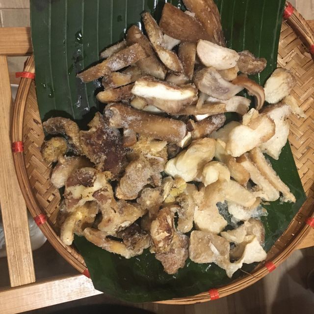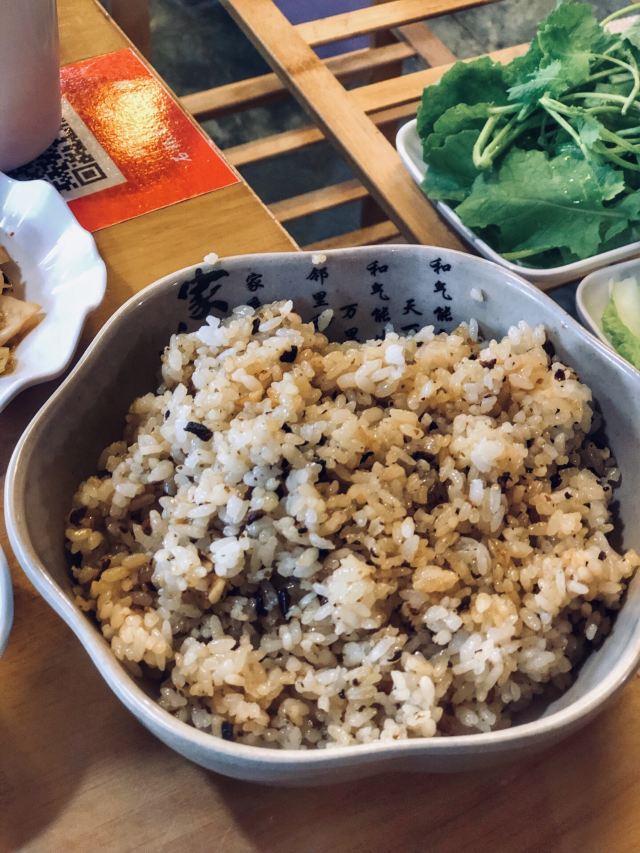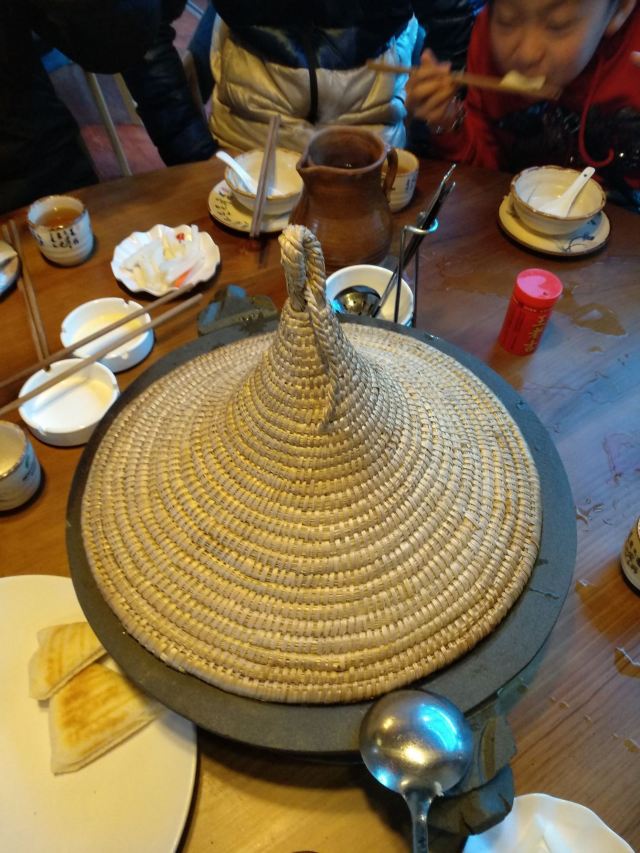 是佩圆呀丽江必吃榜~ 超爱吃菌菇锅,为了满足口腹之欲特地安排出游~爬玉龙雪山归来喝口热汤真是舒服极了。 锅很有特色,完美演绎云南十八怪摘下草帽当锅盖。本来是满怀期待来的,谁知不是季节菌子都是冷冻的,整体味道真的差了很多,当地人说要到8-9月份来新鲜的菌子才会大量上市,唉,怨念 锅底是半只土鸡配8种菌的菌菇拼盘,菌菇应该按不同品种分开下锅煮熟才是,但这家店是所有菌子一股脑倒进锅里煮20分钟,这操作也是醉。 云南风味荟萃是小吃拼盘,里面有炸茨菇,煎凉粉,建水豆腐和油菌子,个人喜欢吃油菌子。 纳西大饼,带有淡淡的甜味,里面还有青稞,很耐嚼也很饱腹。 菌香饭,这个饭不错,加了菌菇进去味道很香,在丽江吃了几顿饭这次终于没夹生,真是不容易