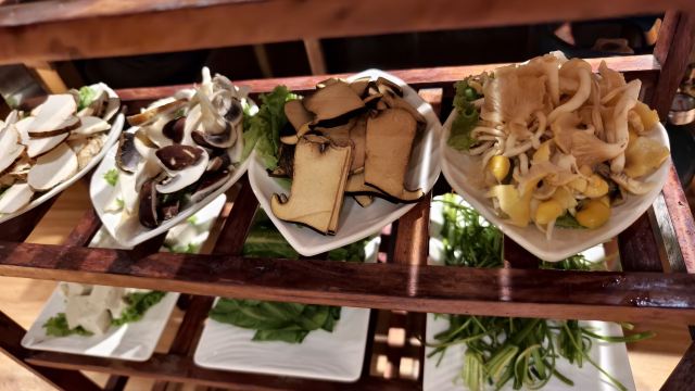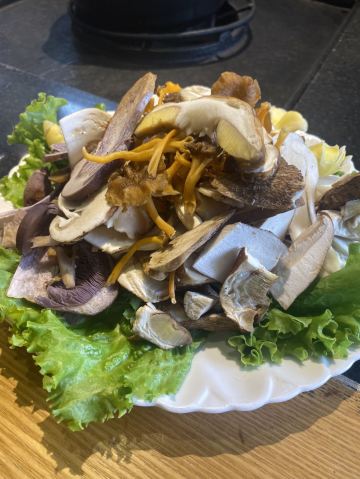 腊排骨锅,黑山羊锅,土鸡锅,烤牛肉,五花肉,烤羊蹄,牦牛干巴,松茸刺身,鸡枞,美味牛肝菌,鸡油菌,羊肚菌,野山药,纳西粉皮,美味竹笋,野生菌炒饭,百香果汁,海棠山楂汁,丽江粑粑,水性杨花,腊排骨火锅,黑山羊火锅