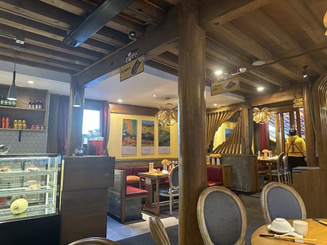 餐厅在猫的天空之城对面,相信很多人都是被“隔壁老王”的梗吸引来的,但这家的老王却是个非常暖心的人,老王希望做一家温暖的餐厅,做一桌让每一位旅行过客都难忘的走心美味。店内主营丽江菜,其中纳西烤肉非常受欢迎,分量特别大,满满一大盘子的五花肉,烤肉下面是一层油炸的薄荷叶,味道独特。