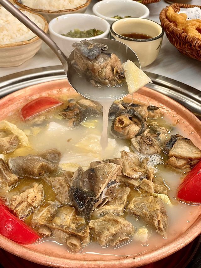 来丽江当然是要安排一顿腊排骨! 不愧是10年老店 阿婆情腊排骨也太赞啦 坚持骨汤现熬,采用老母鸡+大骨现熬8小;古法烹制,没有任何添加剂;坚持自然风干的肋排 味道确实不错 如果你想尝试地道的风味,可以来他们家噢