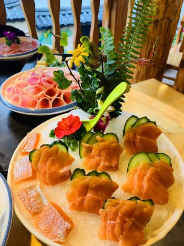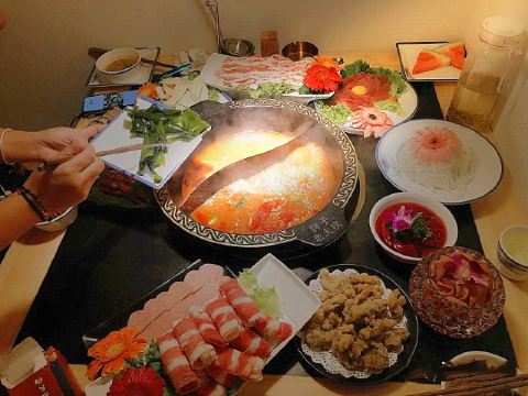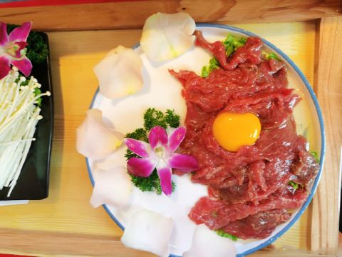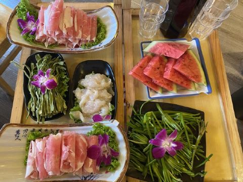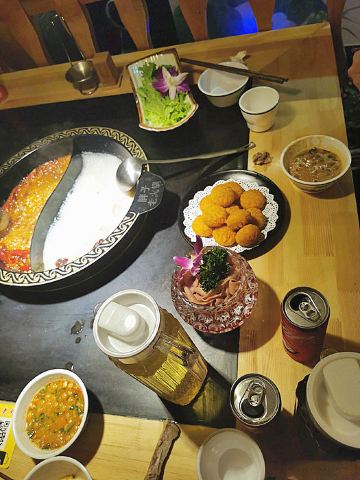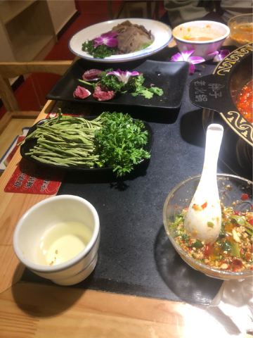 水性杨花,花心土豆片,南瓜饼,瀑布肥牛,千层肚,自助蘸料,丽江特色腊排骨锅,鹌鹑蛋