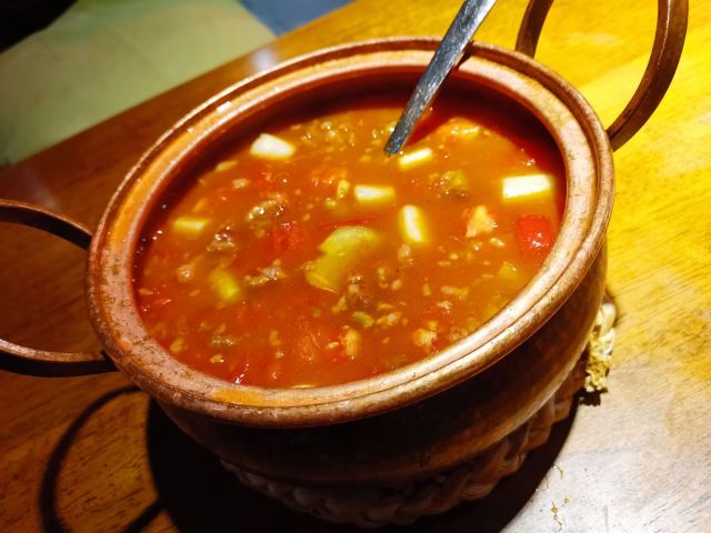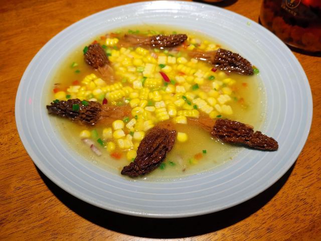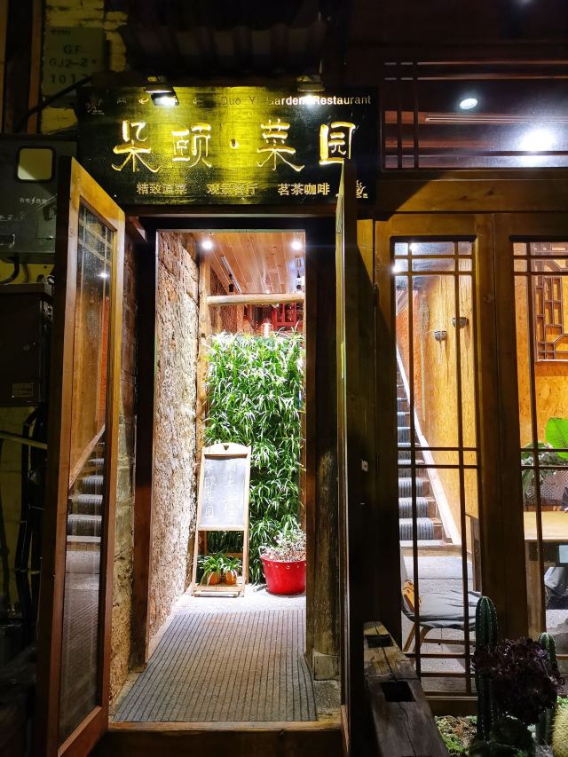 Duoyi Garden · Yunnan Cuisine位于束河古镇内 晚上的束河古镇没什么人气 零零散散的些许游客 倒是这家店 基本上是坐的满满当当 想来也是古镇里的网红餐厅了 走上二楼 往外看去 窗台底下是一片菜地 难怪叫菜园来的 或许还真是店家自己种的 那得多新鲜不是 扯远了 点之前大致问了下服务员 没给出啥建设性意见 也是 通常一个人出来吃饭确实都会比较麻烦 外头下着雨 有点凉 点了个汤煲 要了份时令的菌菇也就对付了 |羊肚菌酿肉^算招牌吧 反正商家推荐 我也推荐 要了个小份 6枚装 羊肚菌的鲜味很纯粹 口感也比较好 挺不错的 |牛肉番茄煲^虽说已经是小份了 显然 对于一个人来说 还是有过之而无不及 在喝下三四碗之后也是真心喝不下了 浓汤很醇厚 底料也足 牛肉不少 挺敦实的