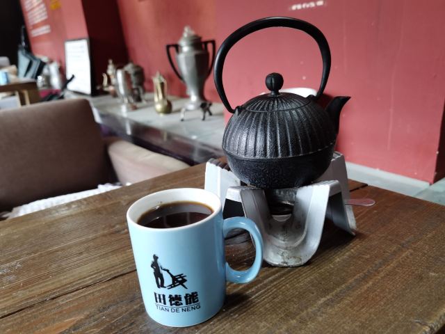 这家咖啡厅是为了纪念法国天主教传教士田德能而建的,他在中国云南的土地上种下了第一颗咖啡苗,因而成为了中国咖啡的始祖。最特别的就是这里的田德能铁壶咖啡,把现磨咖啡豆放在铁壶里烧制而成,有一种非常纯粹的咖啡味。