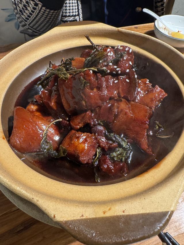 吃在优美的环境里 饭很香 红烧肉还好 各种菌类好吃