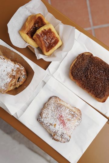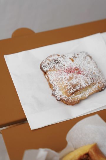Orbit 360° Dining这家店对食材及烘焙过程中每个细节的精准把握 让他家面包的好吃程度 跟其他所有面包店都不在一个水准好吗! 没有电话没有官网 营业时间任性 不打广告 低调的不行 但丝毫不影响它超高的人气 基本上开门就可以冲了 中午左右必卖完 ▪️ᴍᴇʟᴛʏ ғʀᴇɴᴄʜ ᴛᴏᴀsᴛ 小块法吐可爱死了 面包吸收浸润牛奶蛋液 完全融为一体 撕开就能感受到它的绵厚软嫩 表面有点像薄薄的煎蛋皮 烤一层亮晶晶的糖 蛋香特别浓郁 蜂蜜清甜迷人 奶味不重 简单却超治愈 ▪️ᴍɪxᴇᴅ ʙᴇʀʀʏ & ᴄʜᴏᴄᴏʟᴀᴛᴇ 入口先有曲奇般的油酥 然后才有可颂的轻盈 酥得很有层次感 自制莓果酱夹了车厘子 酸甜爽口有明显的果肉感 底层饱满的巧克力酱 醇厚不腻 ▪️ʙᴀɴᴀɴᴀ & ᴄʜᴏᴄᴏʟᴀᴛᴇ 这个的酥软对比更好 软绵绵的香蕉藏在里面 跟巧克力酱也很搭 还有加香气迷人的豆蔻粉 就很喜欢他家日系风格 即使这种馅 整体还是无比清爽 ▪️ʙʀᴏᴡɴ sᴜɢᴀʀ ᴄɪɴɴᴀᴍᴏɴ ᴛᴏᴀsᴛ 似乎卖相平庸的包 最后都会很惊艳 抢到最后一片黑糖肉桂吐司 表面那一层糖霜 香甜酥脆 咔嚓一口开始心动 布里欧的口感相当完美 外圈金黄 内馅柔软而有韧性