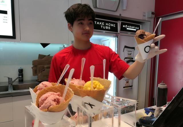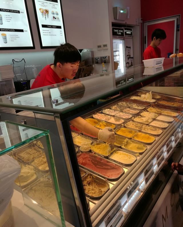 Movenpick号称是新西兰美味的冰激凌,来自瑞士,特点就是奶味很足,当然这也是新西兰的特色。如果要冰淇淋蛋卷,一定要现烤的华夫蛋卷(Waffle Cone),人间美味。