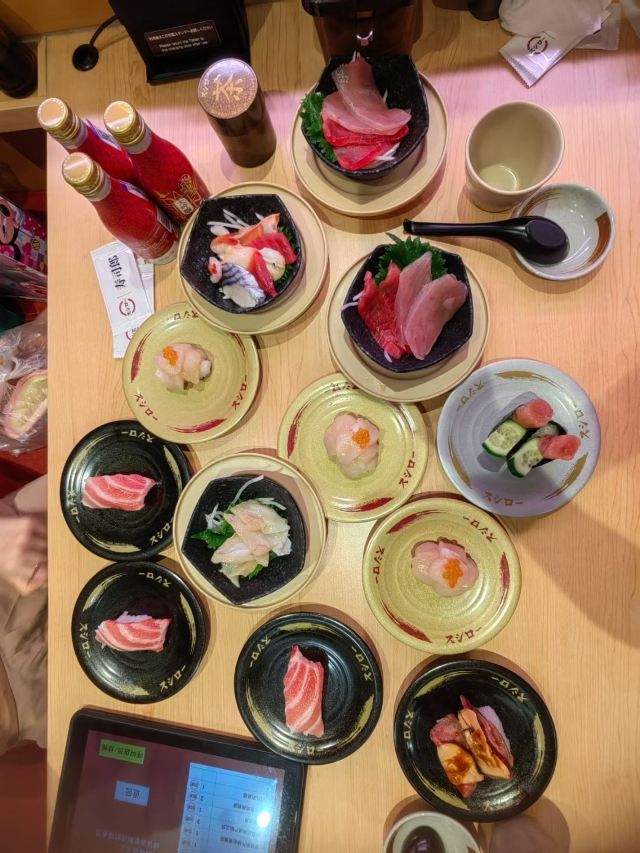 我真的是太喜欢吃寿司了,这个日本料理餐厅主打的就是旋转寿司,比较亲民价廉物美是这家餐厅最大的特点,我们点了不少,最后花了四百都不到。