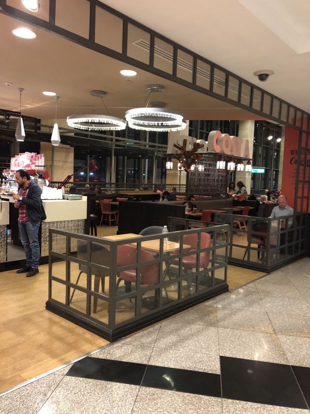 从埃及飞阿联酋已经是晚上时间,机场侯机过程中可以去埃及开罗国际机场转一下,发现埃及的经济发展不稳定,所以国家际品牌入驻不多,价格也不够优惠,而且去阿联酋东西更多更实惠,购买的意愿也不会很强烈,除了埃及特色的产品,一般也就餐饮区消费一下。咖啡店是主流,环境好,又可以填补能量。
