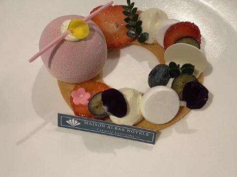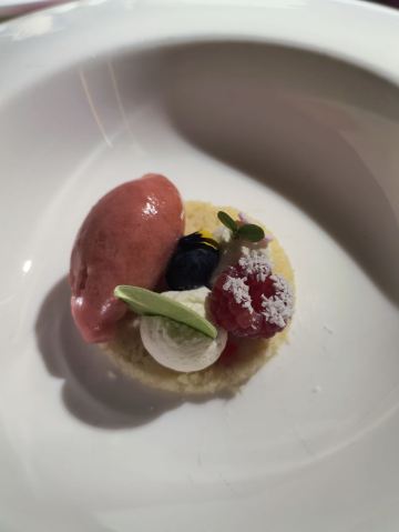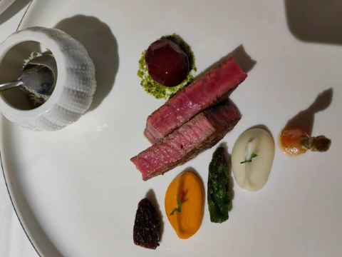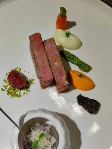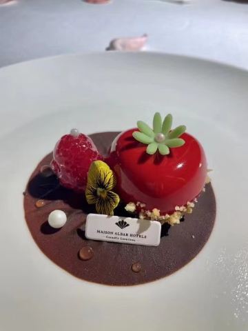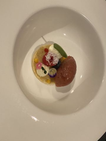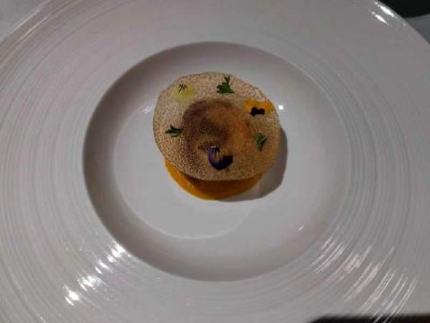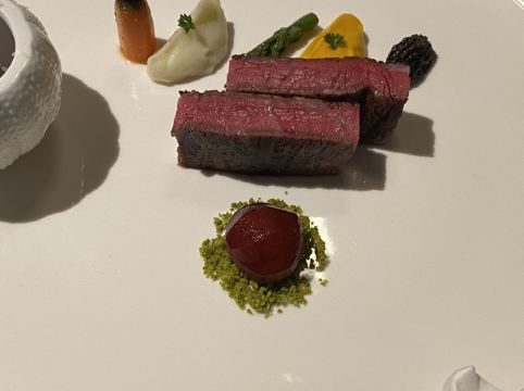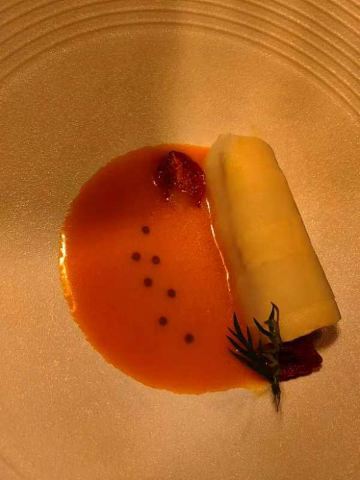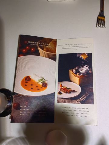 YoYo_9P4N4F6H菜品:餐前面包种类丰富,总会有一款爱吃的。欢迎小吃口感酥酥脆脆酸酸甜甜层次非常丰富,精致开胃。菜单上第一道菜是鹅肝酱搭配罗勒面包:鹅肝酱冷藏过直接吃或者涂抹在烤香的面包上吐司上或者法棍上都可以,而且他家的鹅肝酱非常细腻柔滑,口感更加丰富!第二道菜斑节虾,新鲜斑节虾经过高温炙烤后,鲜甜美味,搭配树番茄,又带一丝酸味。第三道牛尾汤:选的贵州本地牛搭配丰富食材炖煮,入口清香回甘。第四道肉质鲜美的蝶鱼卷搭配贵州酸汤,第五道m7西冷,肉质新鲜有嚼劲,汁酱浓郁很搭。最后两道甜品甜而不腻,很是好吃。 环境:非常安静大气,布置很有氛围感 浪漫满屋。 服务:max小姐姐的服务很周到,贴心细致。