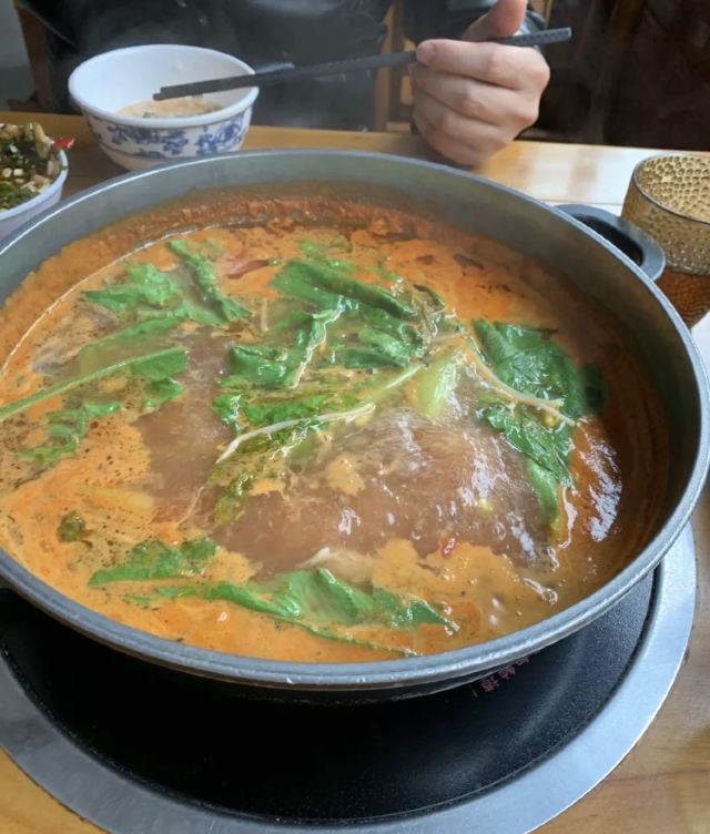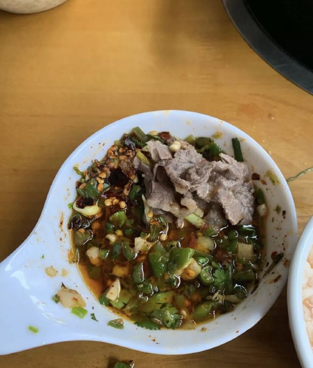 牛肉是我喜欢的食材之一,贵州的新鲜黄牛肉有嚼劲且新鲜,加上酸汤涮,我再用煳辣面以及烧海椒做沾碟,味道就很舒服了。 这家店除了牛肉,牛毛肚很新鲜,炸的酥肉超过无数的品牌大店作品,值得特别赞扬。