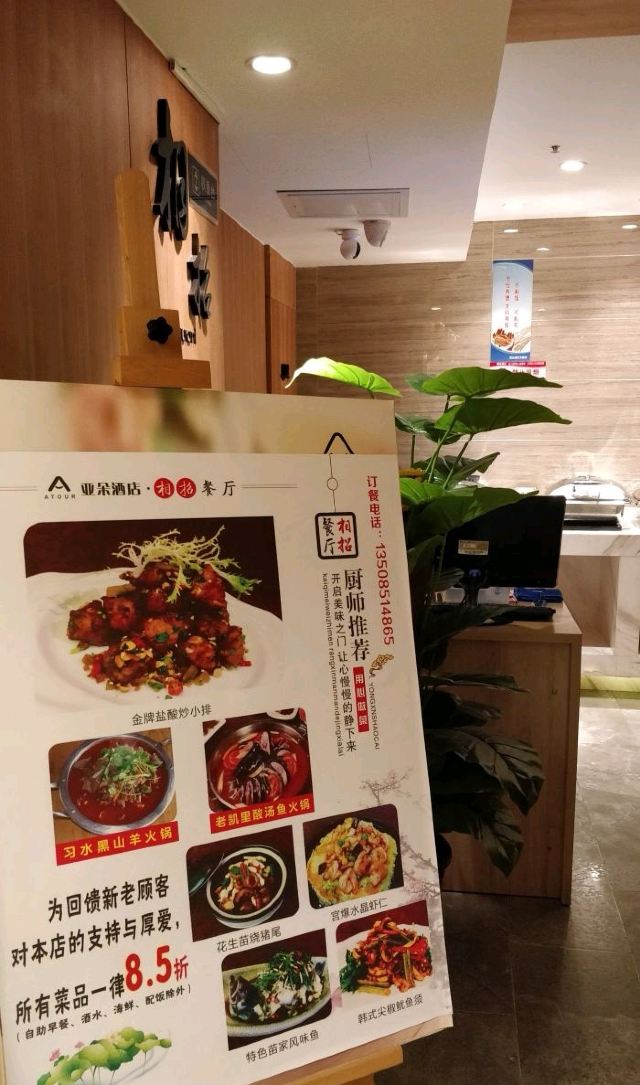 罗辑同学最后一站的正餐:贵阳北站亚朵.餐饮部 【位置】观山湖区北大资源梦想城7-A13栋2层(北站对面,近贵阳北高铁站) 【环境】亚朵酒店的2层-相招“乘兴忽相招,僧房暮与朝”邀您用餐,这里就是餐厅了,这个是用于早餐和午餐还有晚餐的,早餐是自助的其他是点单的。 【口味】 【菜品】不仅仅是炒菜,还有火锅哦,我还是蛮喜欢这个火锅的,看着很不错的样子。 农家小炒肉38.00 这个是好评的菜,连大蒜我都觉得好吃了,咸淡适中,很赞哦,五花肉也不觉得油腻,就是刚刚好; 大方酸菜炒汤圆19.00 贵阳小吃,我不喜欢酸菜这样炒着吃,感觉都榨成酥了,还是湿哒哒的酸菜好吃,炒的汤圆请来宁波吃,那才叫好吃,外酥里嫩的,咬一口,芝麻就留下来了,是真的好吃,这里的就这样吧。 宫保鸡丁¥32.00 这个鸡丁的鸡肉带着鸡皮,那很特别了,总的来说还不错 桂花土豆丝¥22.00 不是桂花是鸡蛋,土豆丝还是要酸辣的菜好吃,这个不好吃,炒的一般 番茄蛋花汤这个还不错 【服务】亚朵的小姐姐们态度都是极好的,会让你觉得特别舒服;点餐也是,一直都微笑着,很舒服的那种,虽然很多菜都没有了,淡淡的忧桑