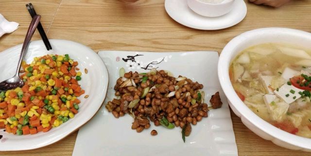 最后一站的正餐:贵阳北站亚朵.餐饮部 【位置】观山湖区北大资源梦想城7-A13栋2层(北站对面,近贵阳北高铁站) 【环境】亚朵酒店的2层-相招“乘兴忽相招,僧房暮与朝”邀您用餐,这里就是餐厅了,这个是用于早餐和午餐还有晚餐的,早餐是自助的其他是点单的。 【口味】 【菜品】不仅仅是炒菜,还有火锅哦,我还是蛮喜欢这个火锅的,看着很不错的样子。 农家小炒肉38.00 这个是好评的菜,连大蒜我都觉得好吃了,咸淡适中,很赞哦,五花肉也不觉得油腻,就是刚刚好; 大方酸菜炒汤圆19.00 贵阳小吃,我不喜欢酸菜这样炒着吃,感觉都榨成酥了,还是湿哒哒的酸菜好吃,炒的汤圆请来宁波吃,那才叫好吃,外酥里嫩的,咬一口,芝麻就留下来了,是真的好吃,这里的就这样吧。 宫保鸡丁¥32.00 这个鸡丁的鸡肉带着鸡皮,那很特别了,总的来说还不错 桂花土豆丝¥22.00 不是桂花是鸡蛋,土豆丝还是要酸辣的菜好吃,这个不好吃,炒的一般 番茄蛋花汤这个还不错 【服务】亚朵的小姐姐们态度都是极好的,会让你觉得特别舒服;点餐也是,一直都微笑着,很舒服的那种,虽然很多菜都没有了,淡淡的忧桑