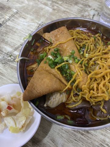 zhxxwf点了一个经典的软哨肠旺面,加了碱的面条口感爽滑非常筋道,汤头的配料也很扎实,有大肠、软哨、豆泡...店里还有免费的小菜可以自取,酸甜口的泡菜搭配红汤非常的爽口,别看这汤是红的,其实一点也不辣,一碗面只要16!物价很良心了~而且东西很干净,总而言之,真的hin好次,有机会还会去的