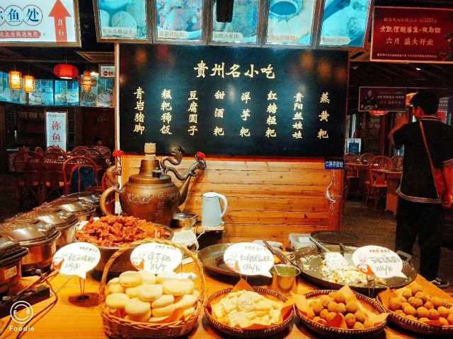 玫瑰冰粉,糕粑稀饭,老凯俚酸汤鱼,辣子鸡,青岩卤猪脚,豆腐圆子,江团酸汤鱼,红糖糍粑,丝娃娃,西红柿凉拌粉,猪蹄,羔粑稀饭,贵州糍粑,西红柿粉皮,蔬菜篮,口水牛肉,料碟,酸萝卜,小米渣,付氏冰粉,蘸料,米酒,腊味拼盘,苗家洋芋饭,盐菜肉,腊味合蒸,黄辣丁精选,米豆腐,酸汤鱼