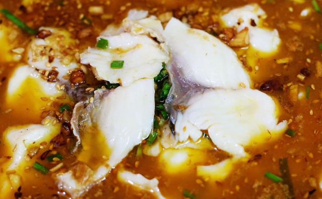 辣子鸡(应该说青椒鸡)、干黄花菜煮水滑肉、番茄鱼。滑肉是老家红苕粉做的,农家风味,番茄鱼里面炒芝麻撒很多也可以,最佳必须是辣子鸡,吃完一大盘,舍不得吃完打包回家晚上吃了一顿,现在渣渣还留着明天中午加鸡肉再炒一顿,可见一斑。