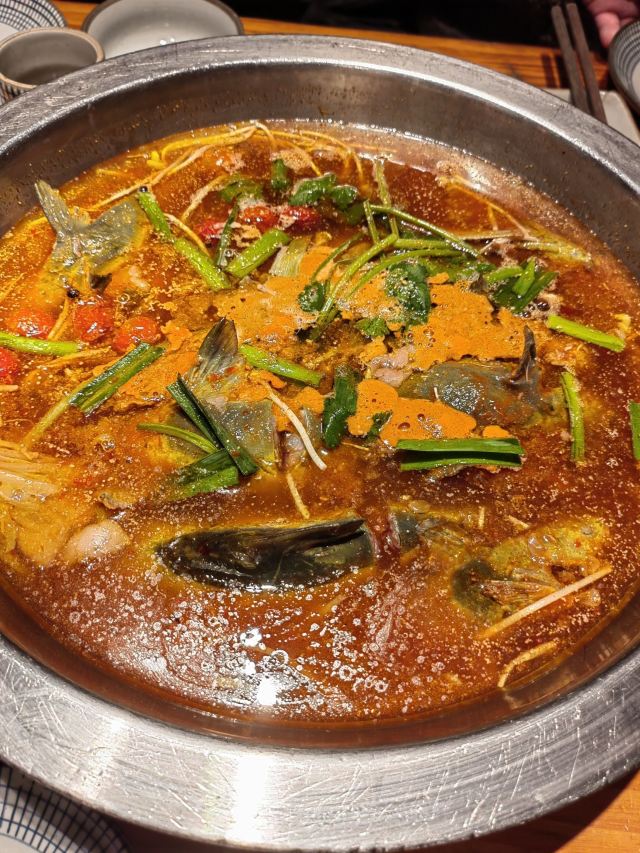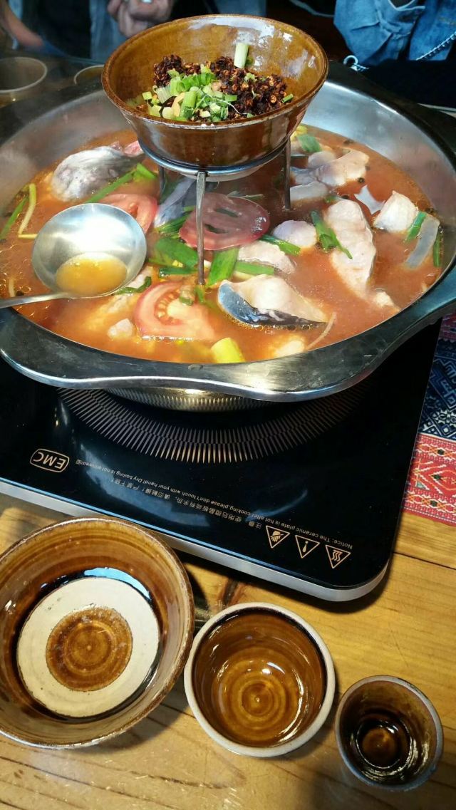 Harmen当地人推荐开贵阳必去吃的一家名气在外的酸汤鱼店,但是广东人表示口味不合适,臣妾不接受啊!!!广东人觉得酸汤鱼味道怎么跟泰国冬阴功极像呢,而且据说开吃之前先来喝汤第一步都是喝不习惯,但是里面的鱼肉质是很好吃的。