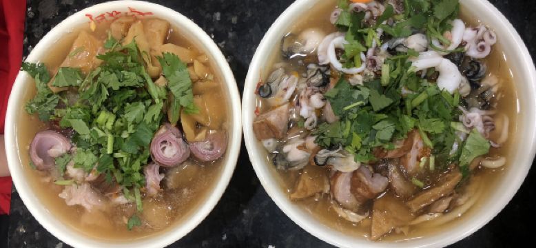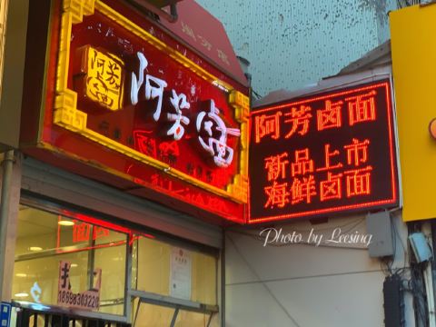 A FEN LU MIAN YAN AN BEI LU DIAN阿芳卤面的名号小歆就不用说了,不仅在漳州,泉州、厦门也有不少卤面店打着阿芳的招牌呢。漳州也有不少阿芳的分店,要吃正宗的阿芳卤面还是得来延安北路这家哦。 在店门口就可以看到店内的人气了,不仅制作区站满了点单的人们,店内不过是正餐时段还是下午时段常常都是爆满状态。 卤汁热腾腾的,浇在面真是绝了,口感十足,一放嘴边一滋溜就滑进嘴里,那份满足感溢满心头。 卤汁里有猪皮等好几种配料,大肠必点,腊肠酒香浓郁。加上自取的蒜香末和香菜,这就是真正的漳州卤面哦。