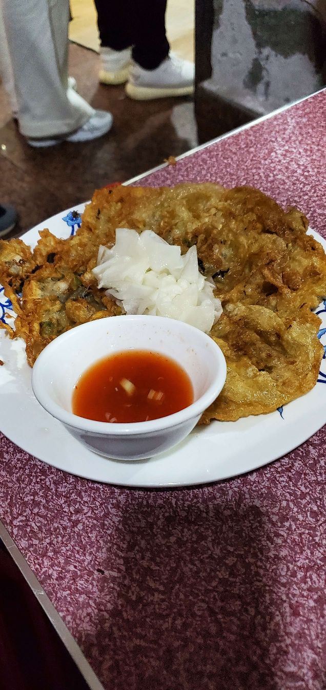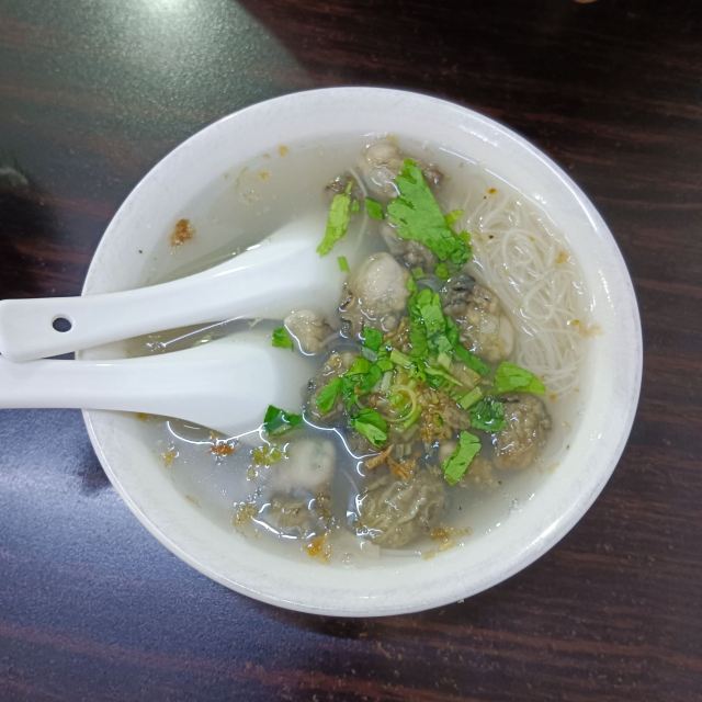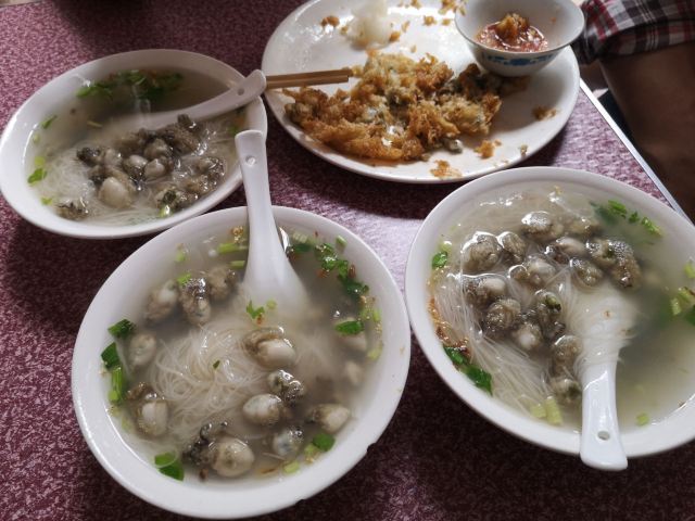 当地朋友带着去的老店,说是著名小吃,看网评也是必去打卡的第一名[调皮] 人很多,不像别家真的是蚵仔真的煎,这家基本就是油炸,一大锅热油,把调好的糊直接倒进去,很快就捞起来,可能是人太多,没功夫慢慢煎[调皮] 口味确实特别,吃了几口,没吃到蚵仔,问蚵仔在哪里,才恍然大悟,蚵仔太鲜和面糊已经融为一体,不分彼此了,才知道以前吃的,都不正宗[调皮] 确实必须体验一下,😁[调皮] 面线糊,也不错[调皮]😁