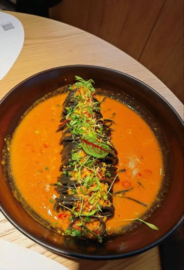 开业不久的店子,处于闹市商场中; [调皮]生意很好,我们运气好没有等位; [调皮]轻奢装修我个人很喜欢,清清爽爽的心情都明亮起来[色] [调皮]开车来的话可以停地下停车场,三小时内免#费; [调皮]服务很好,牛排烤得一级棒,我要的是全熟的,但真的很嫩;好喜欢吃蟹黄意面,Q弹的意面被蟹黄包裹;榴莲披萨:脆皮、薄,没有传统的厚重感,但榴莲量又很足。