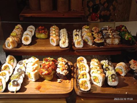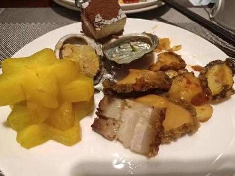 咖喱炒大闸蟹,香辣大闸蟹,清蒸大闸蟹,三文鱼,黑椒牛排,口味小龙虾,海鲜炒乌冬面,寿司,法式芝士蛋糕,蒜蓉烤生蚝,烤扇贝,佛跳墙,龙虾