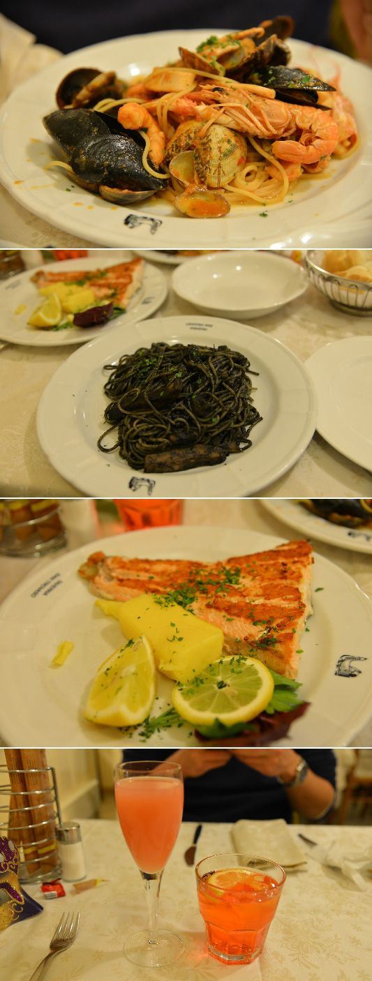 强烈推荐Taverna San Trovaso!传说中必吃的威尼斯墨鱼面。入口满是奇异的香味,墨汁也够黑够难看。炸海鲜更是巨大一盘,隔壁桌Madame直接目瞪口呆(我也呆了,硬头皮吃完..) Madame竖起大拇指说well done。后来在码头又遇见她还认出我来继续赞叹我的食力.....